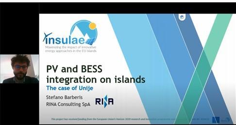 Stefano Barberis from RINA consulting presented the PV and the battery energy storage system (BESS) integration on islands for the case of Unije during the workshop on Energy Transition on European Islands while four other H2020 demonstration projects were also presented (SMILE, GIFT, REACT and ROBINSON).