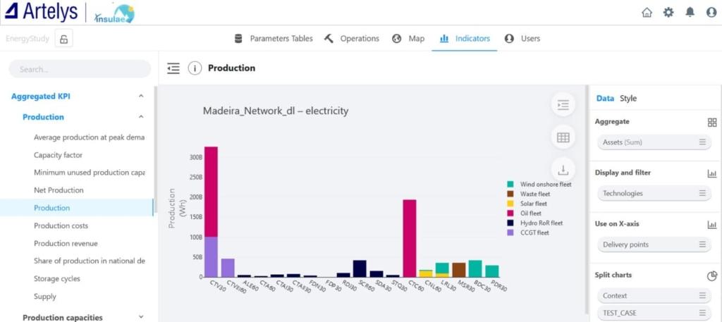 The tool also includes the possibility to create pathways for the evolution of an insular energy system, thanks to a dedicated library of actions. These actions can represent investments in new power generation technologies, a switch from internal combustion engine cars to electric vehicles, the commissioning of a new power line, etc.